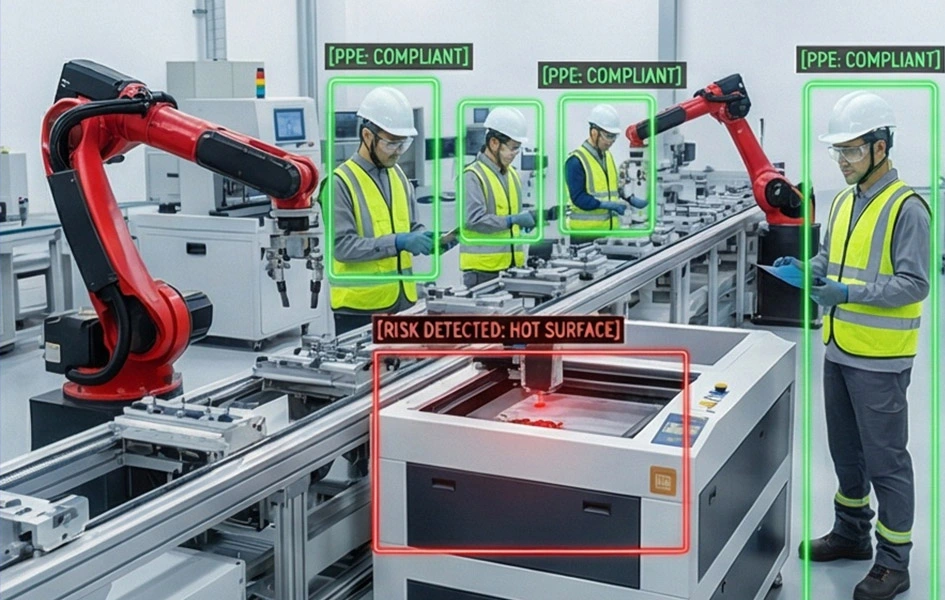 Our PPE detection begins with high-fidelity granular ingestion of the industrial environment. Using ultra-high-definition edge cameras, the system “Senses” every individual entering the site, scanning for specific visual signatures of safety gear. Unlike basic motion sensors, our AI is trained to recognize the exact geometry and reflective properties of safety helmets, high-visibility vests, protective eyewear, and safety harnesses. Even in crowded manufacturing floors or low-light construction zones, the sensing layer captures these data points in real-time, providing a continuous stream of visual evidence for the next stage of reasoning.
